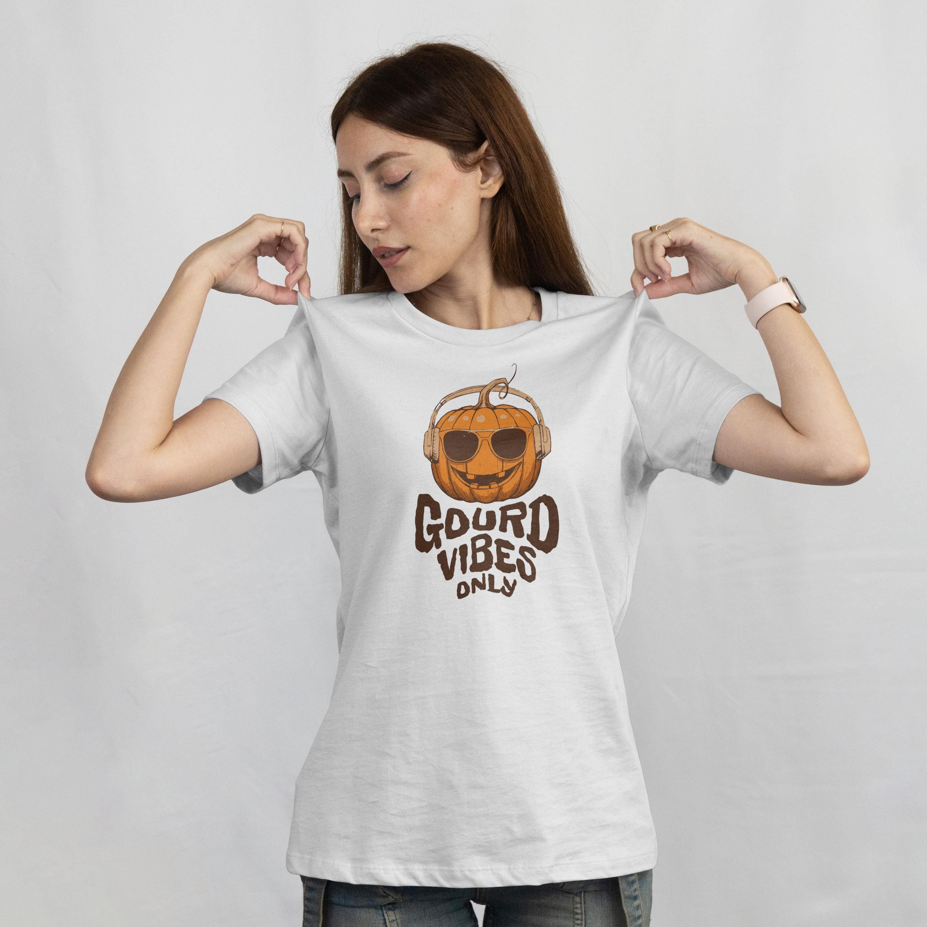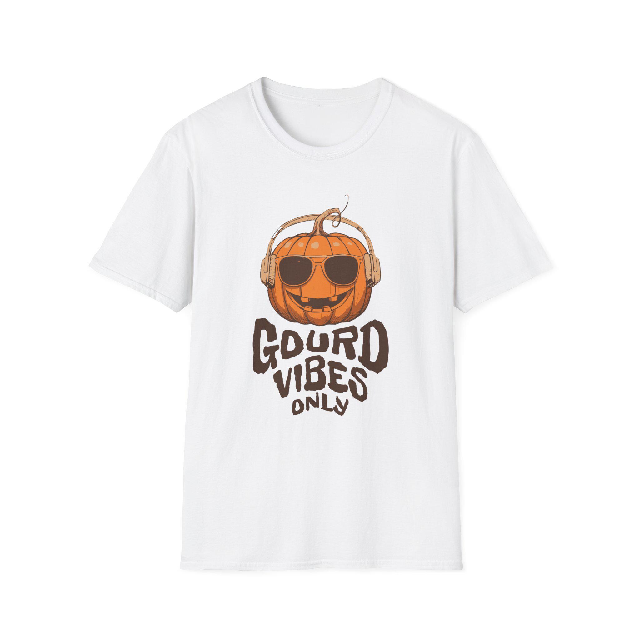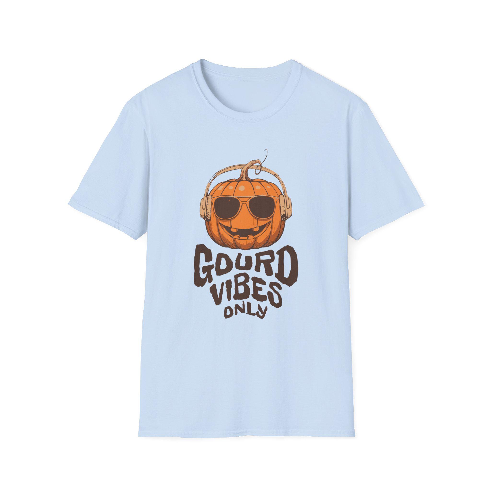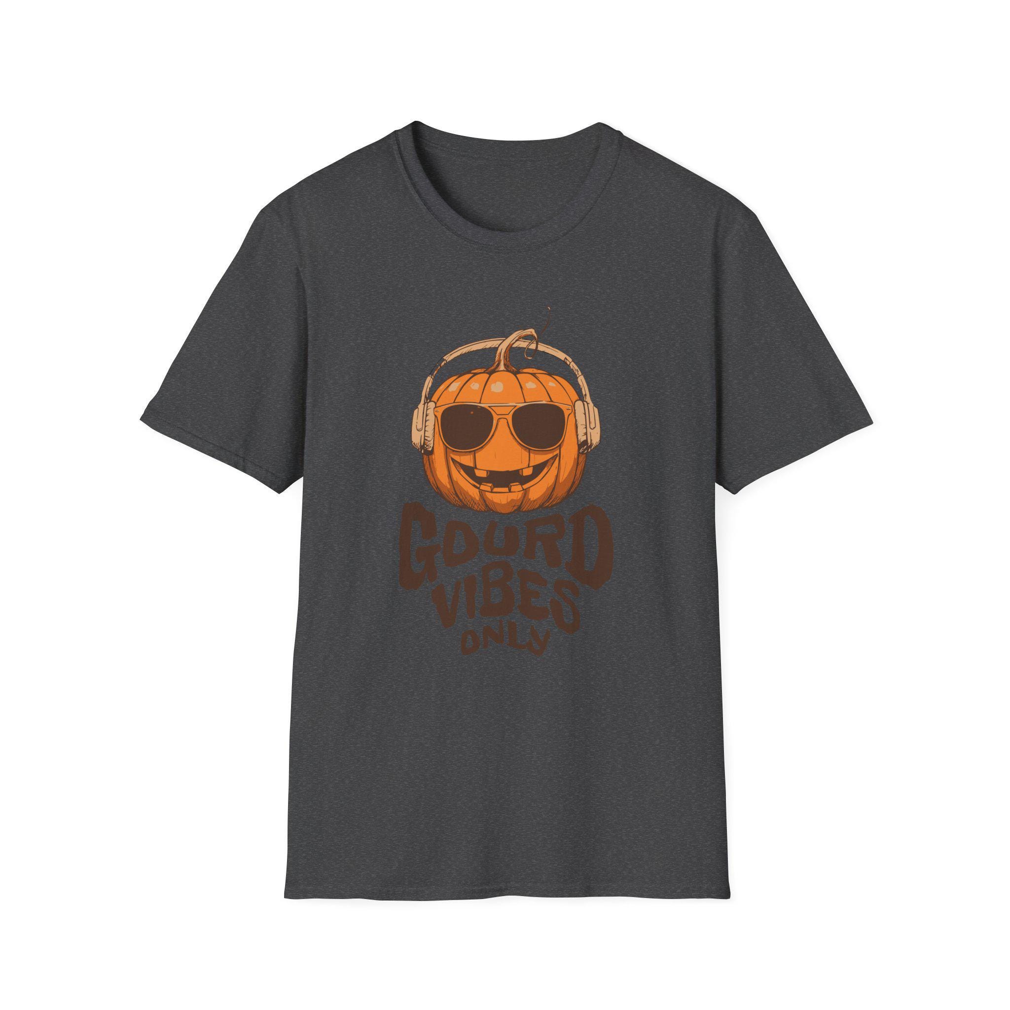 Add a playful punch to your autumn wardrobe with the Gourd Vibes Only T‑Shirt. This fun jack-o’-lantern graphic features a cool pumpkin wearing sunglasses and headphones, complete with a classic carved smile. The rustic brown font below reads “GOURD VIBES ONLY,” giving the design a vintage, laid-back Halloween vibe. The color palette centers on a bright orange pumpkin with cream accents, capturing a casual, retro look that’s perfect for fall.