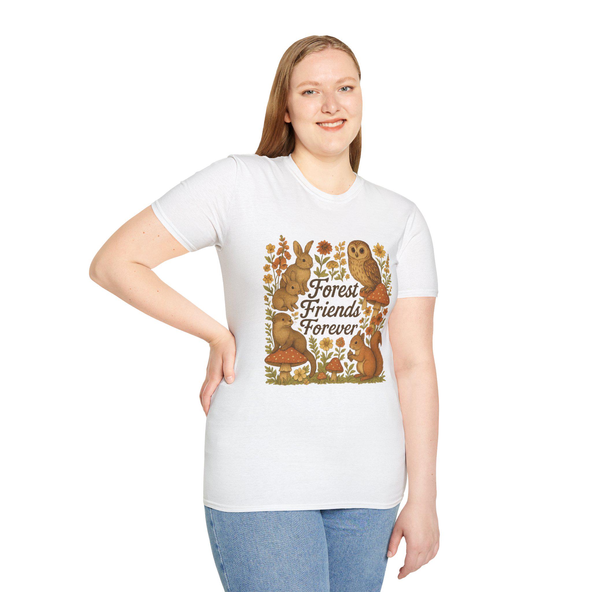 Embrace the charm of nature with this delightful unisex t-shirt featuring an enchanting design of adorable forest animals. Crafted for comfort, this softstyle t-shirt is perfect for casual outings, cozy gatherings, or simply relaxing at home. Its versatile style makes it suitable for any occasion, whether it’s a picnic in the park, a birthday celebration, or even as a thoughtful gift for a loved one. Ideal for animal lovers and nature enthusiasts alike, this t-shirt is a wonderful addition to any wardrobe. Wear it during autumn festivities, Earth Day celebrations, or whenever you want to show off your love for the great outdoors!