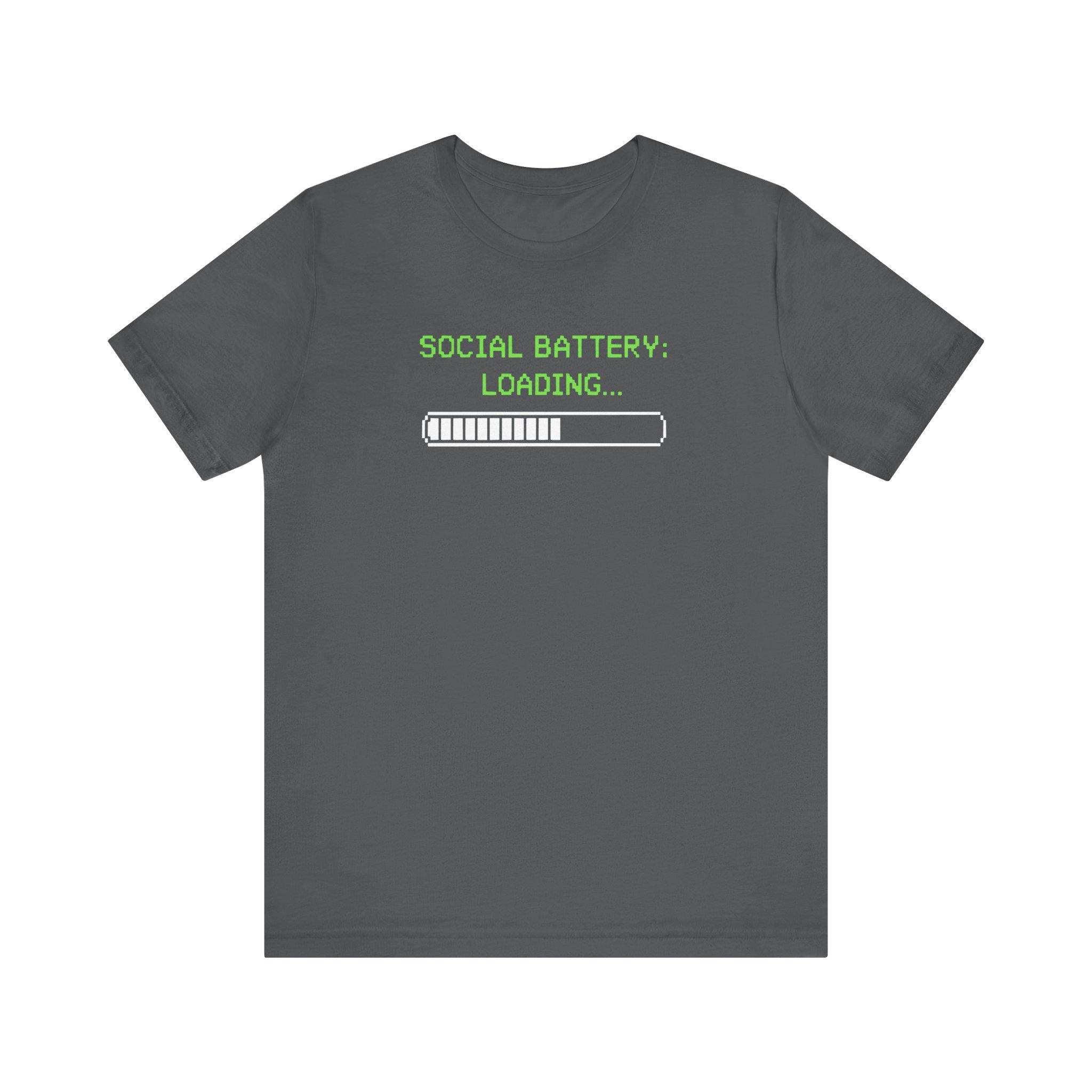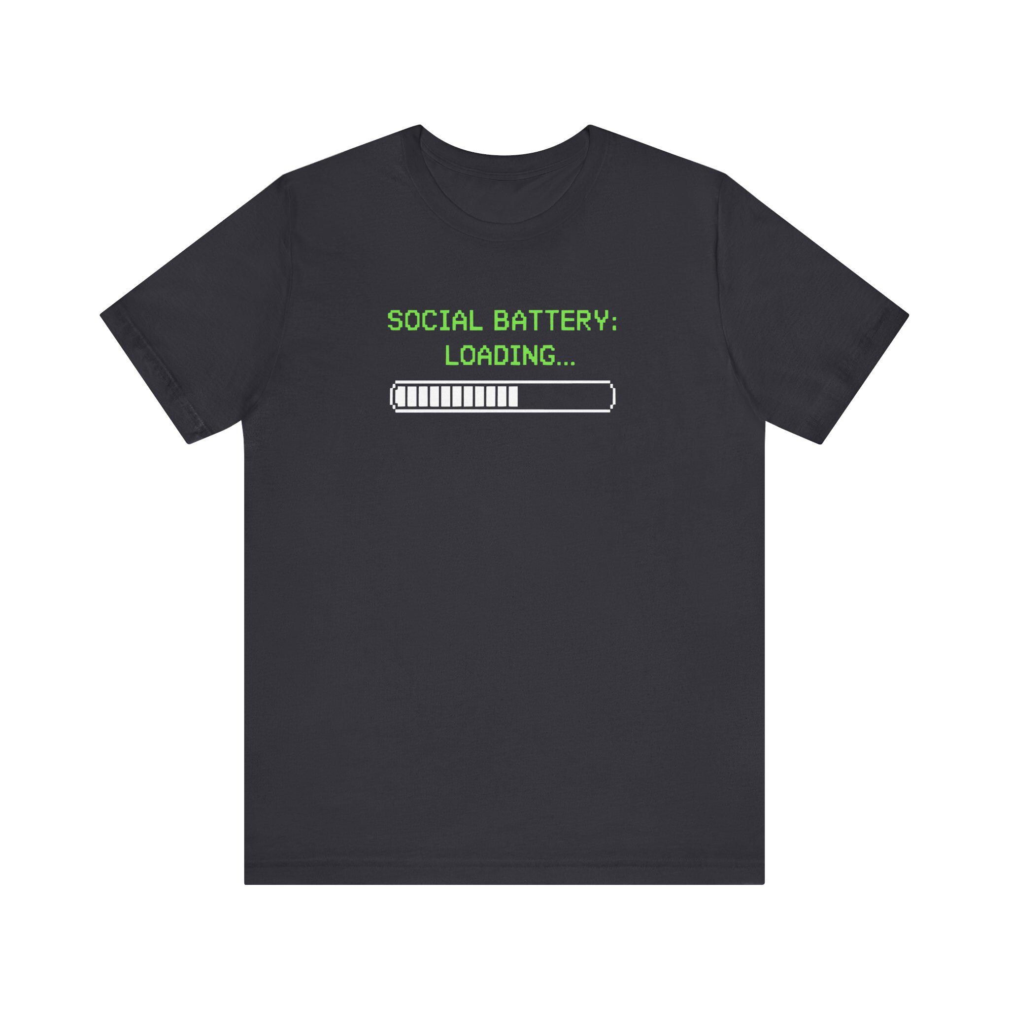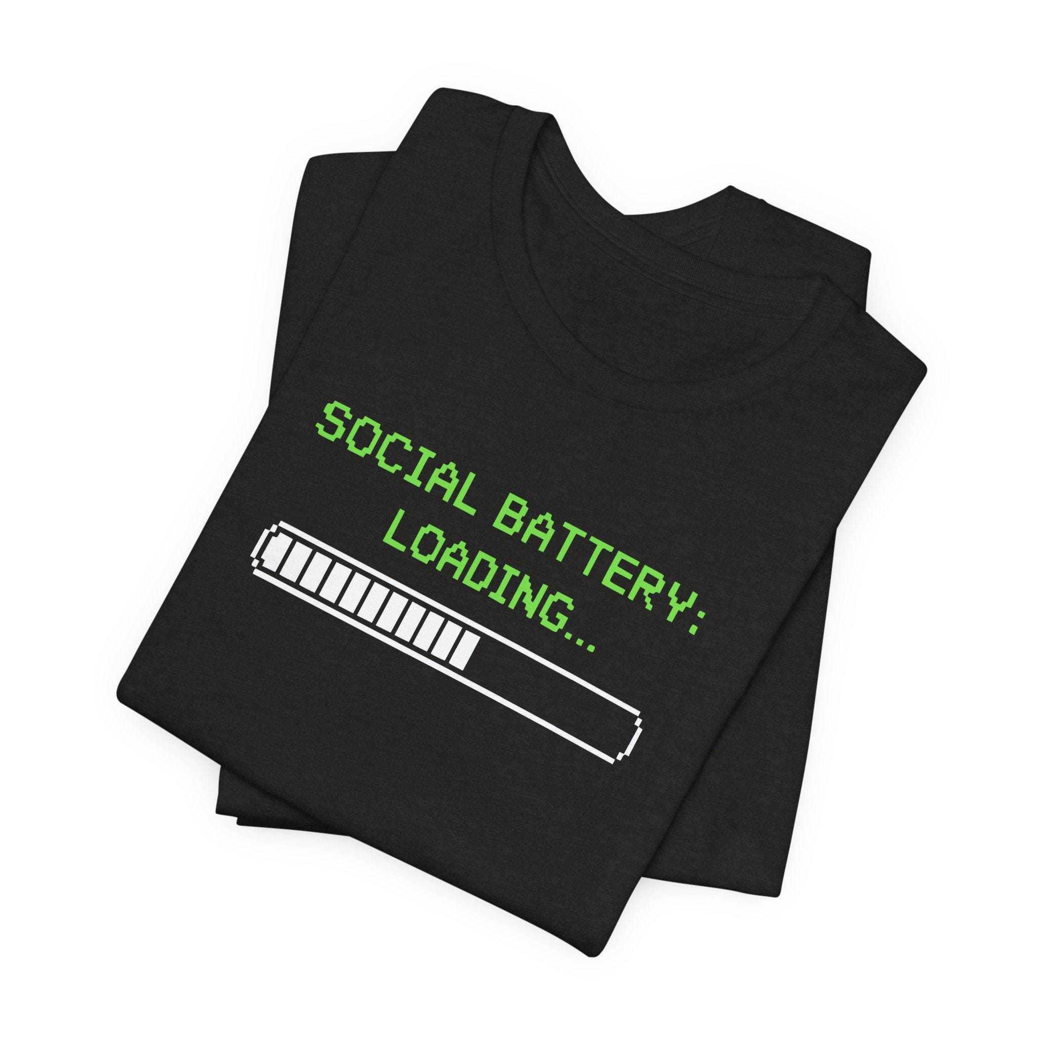 Your social battery still booting up? This funny retro tee features a pixel-style “SOCIAL BATTERY: LOADING…” bar—perfect for gamers, introverts, and anyone who runs on quiet time. Clean, high-contrast print that pops on dark shirts and pairs with jeans or joggers.