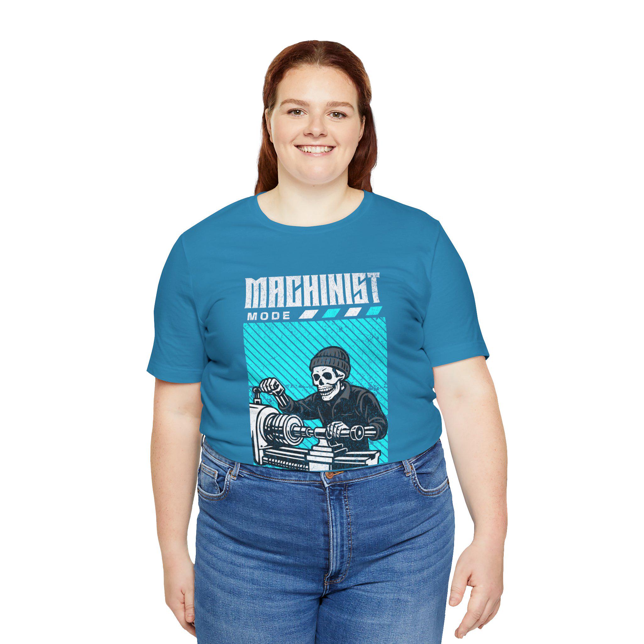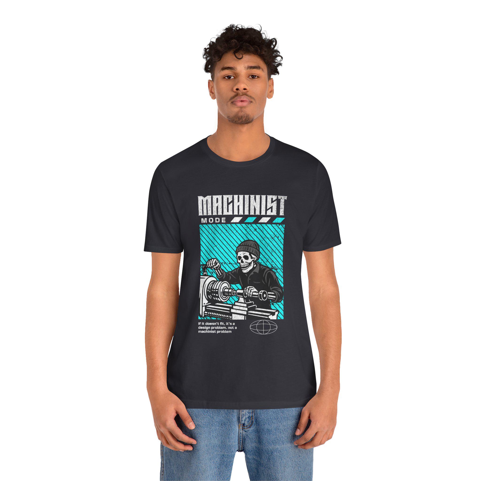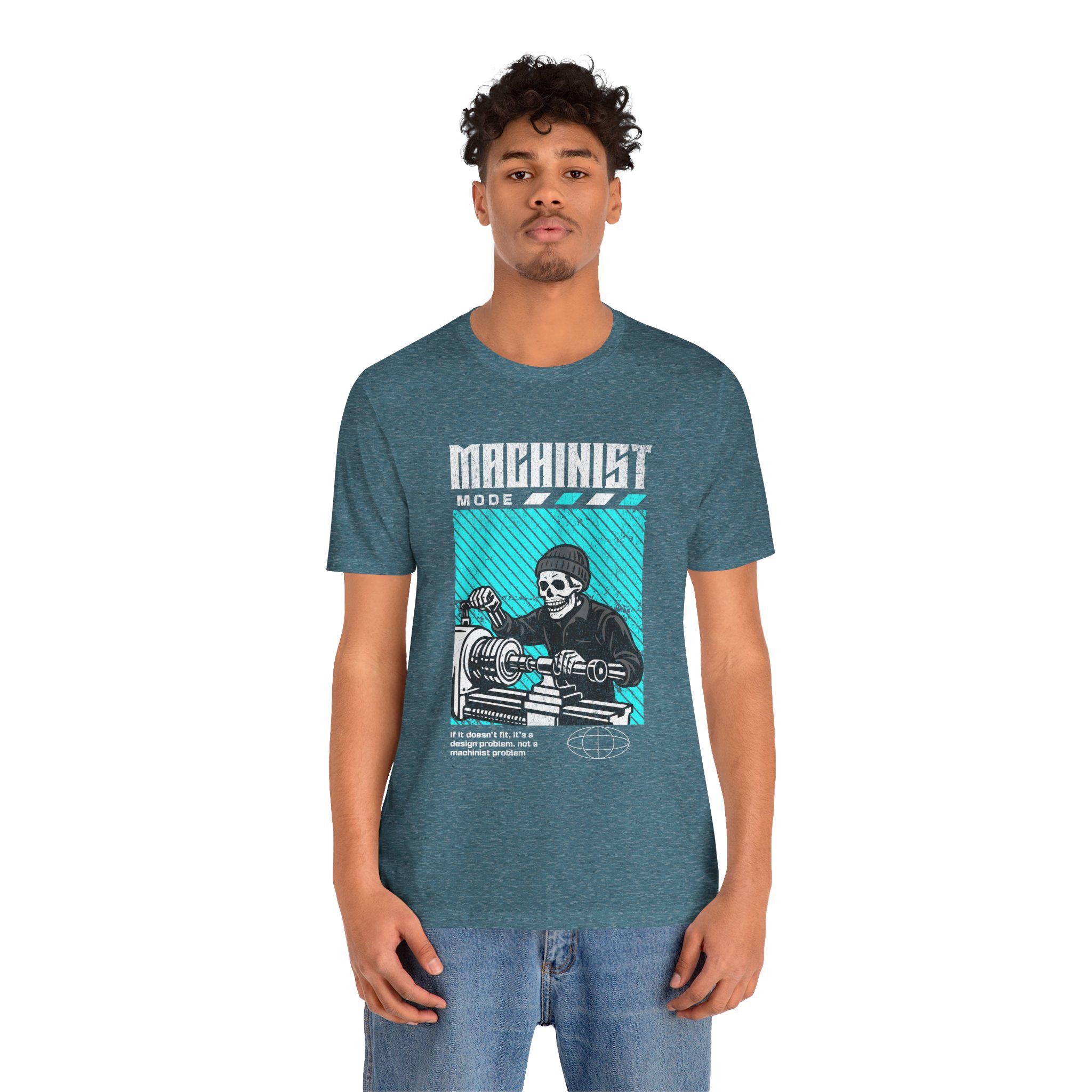 This lightweight jersey tee carries a bold machinist-themed graphic that blends vintage tradecraft with modern streetwear energy. The front illustration shows a focused machinist at the lathe, rendered in high-contrast linework with teal accents that pop against the dark fabric. Wear it on the shop floor, at maker meetups, or while tinkering in the garage—its breathable Airlume cotton keeps you comfortable through long hours of hands-on work. The retail crew neckline and clean silhouette make it easy to layer under a work jacket or wear solo with worn denim. Built to hold shape with side seams, shoulder tape, and a ribbed knit collar, this shirt balances durability with casual style. Ethically manufactured and REACH certified, it’s crafted for adults who take pride in making things with skill and grit.