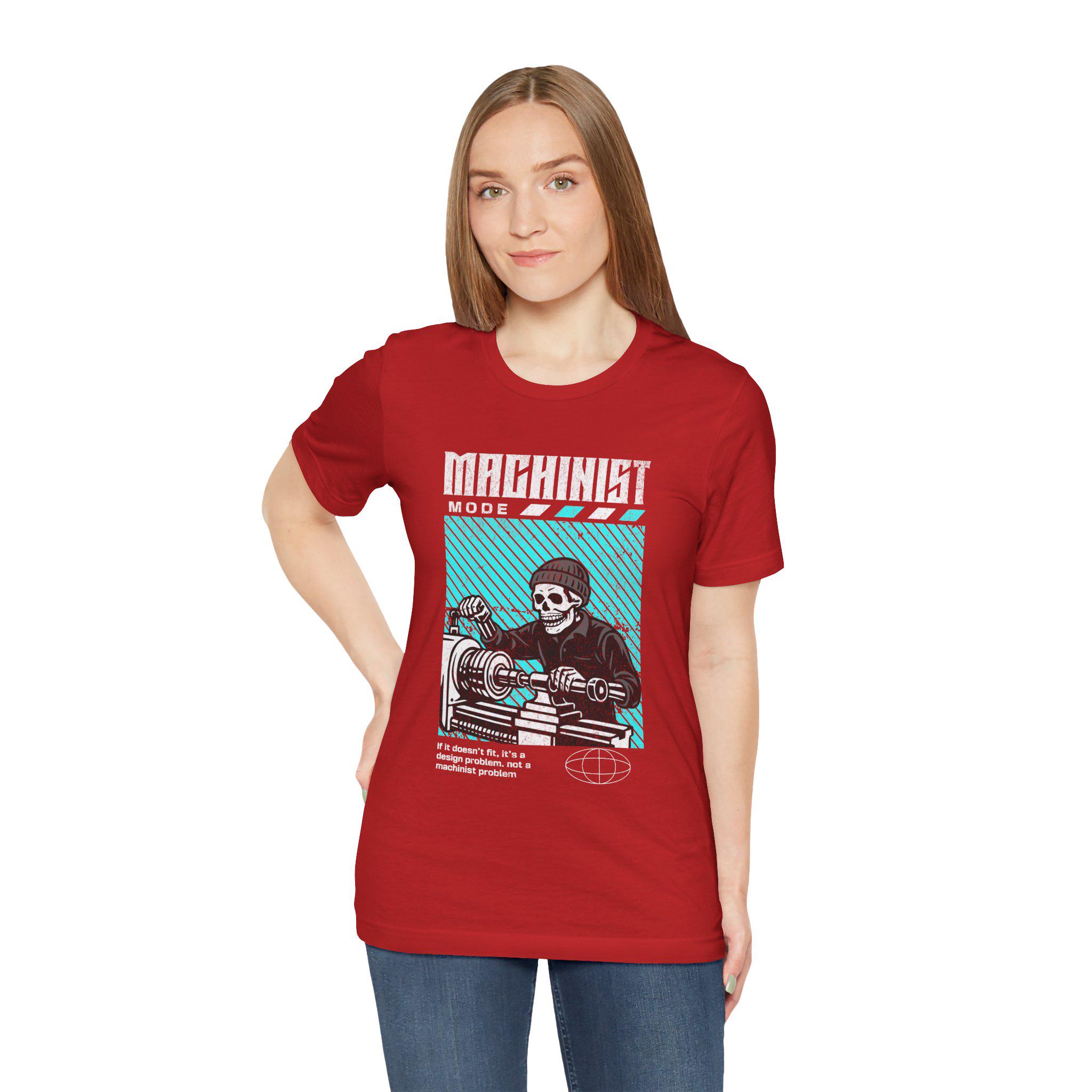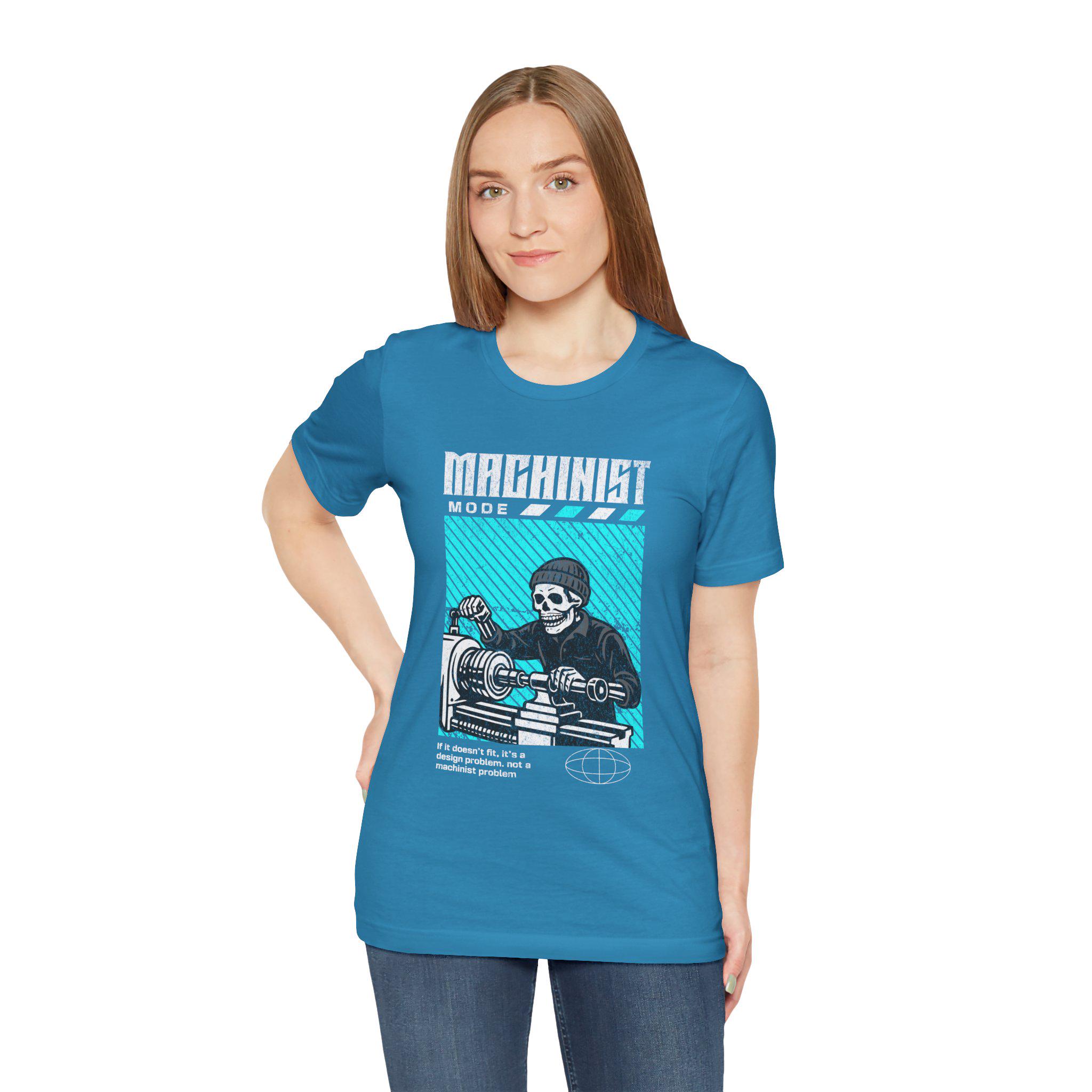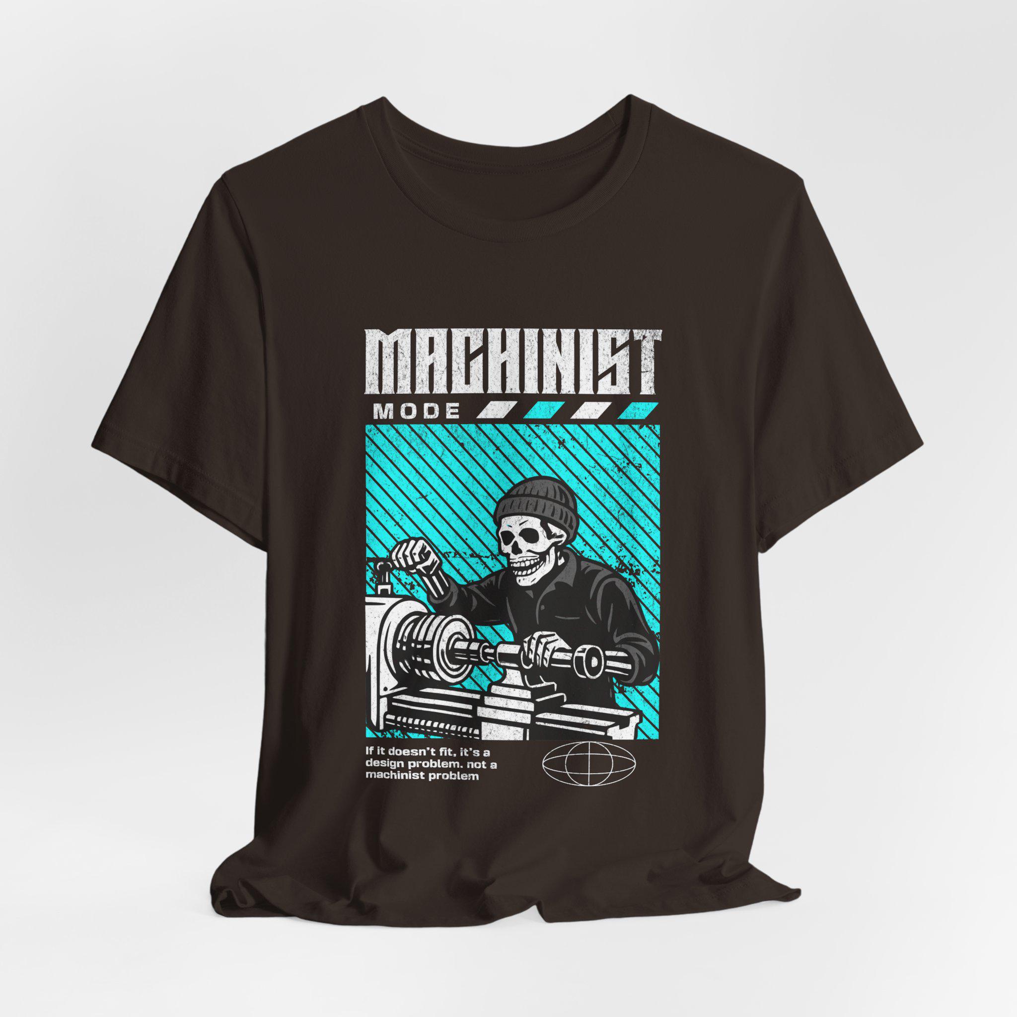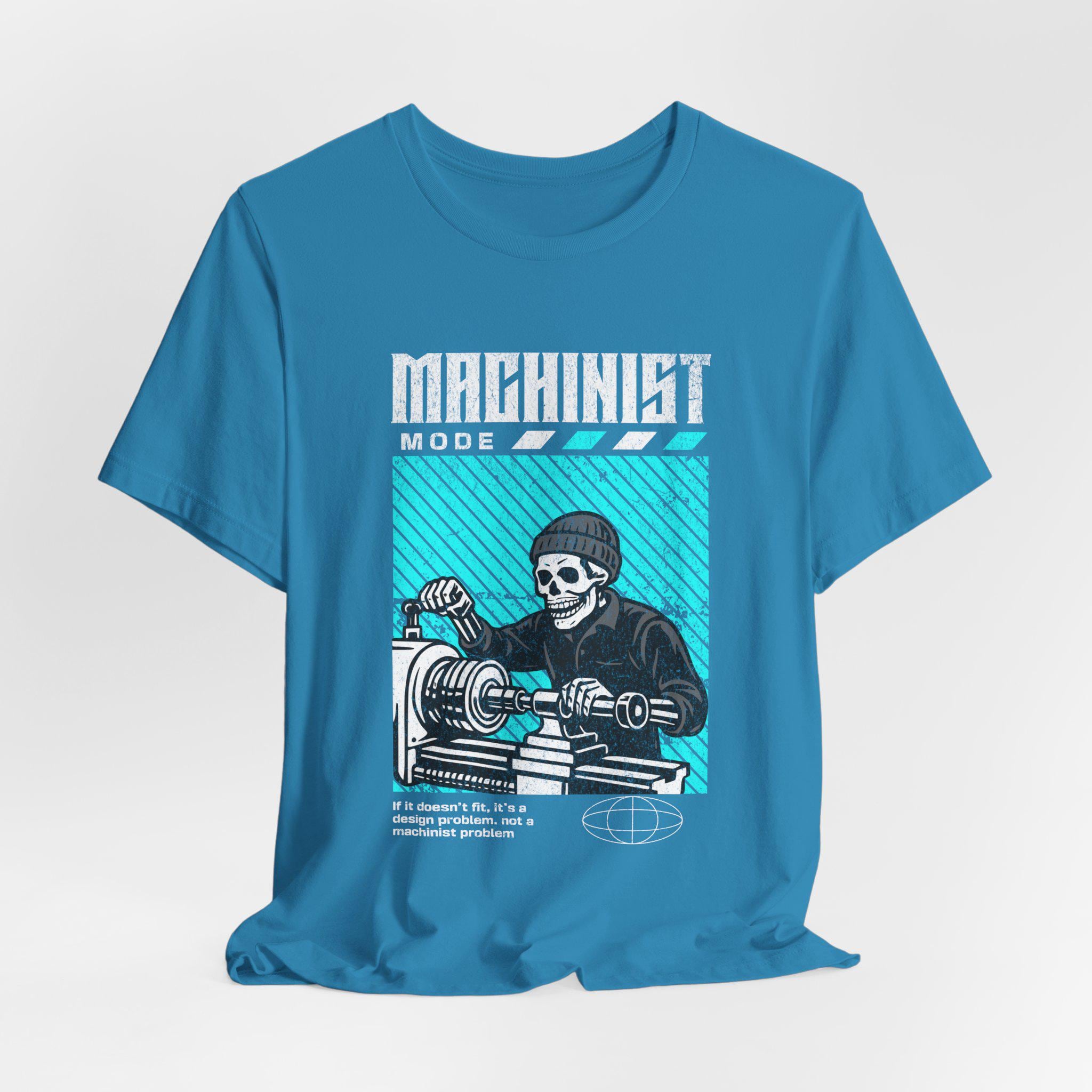 This lightweight jersey tee carries a bold machinist-themed graphic that blends vintage tradecraft with modern streetwear energy. The front illustration shows a focused machinist at the lathe, rendered in high-contrast linework with teal accents that pop against the dark fabric. Wear it on the shop floor, at maker meetups, or while tinkering in the garage—its breathable Airlume cotton keeps you comfortable through long hours of hands-on work. The retail crew neckline and clean silhouette make it easy to layer under a work jacket or wear solo with worn denim. Built to hold shape with side seams, shoulder tape, and a ribbed knit collar, this shirt balances durability with casual style. Ethically manufactured and REACH certified, it’s crafted for adults who take pride in making things with skill and grit.