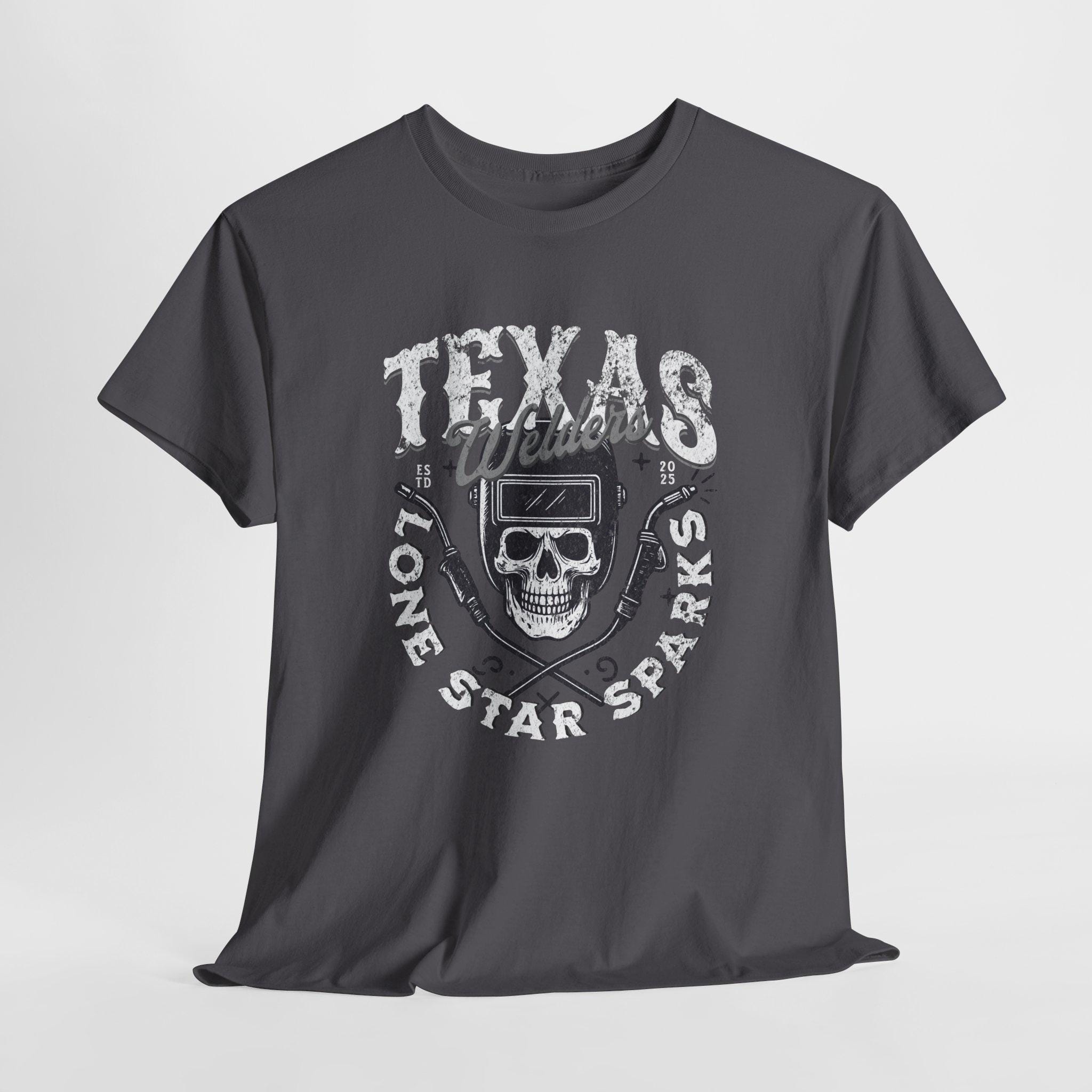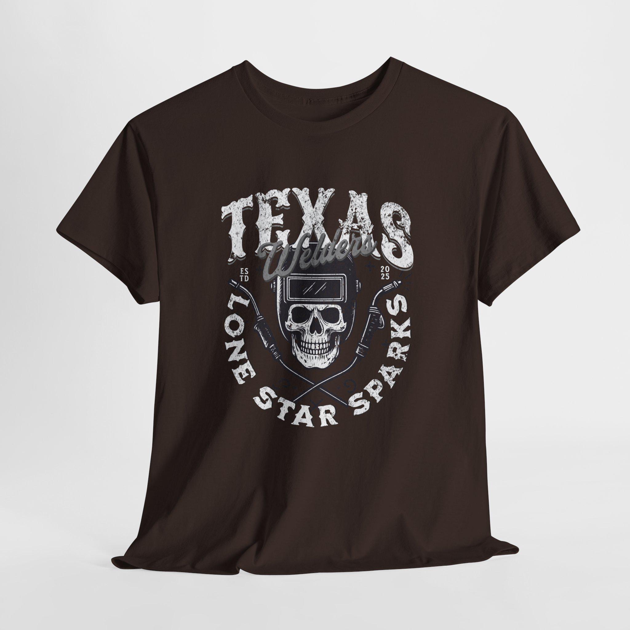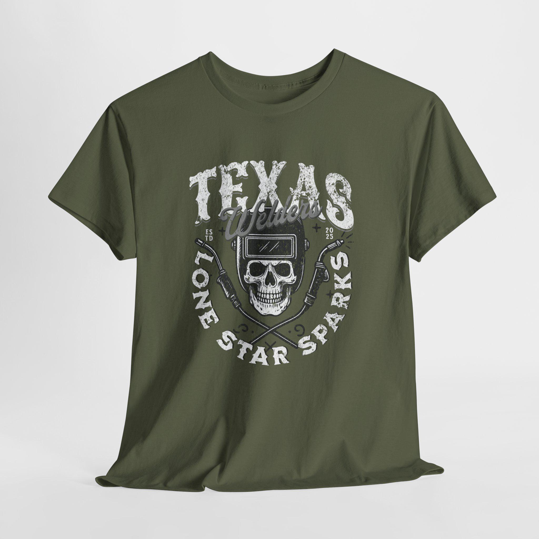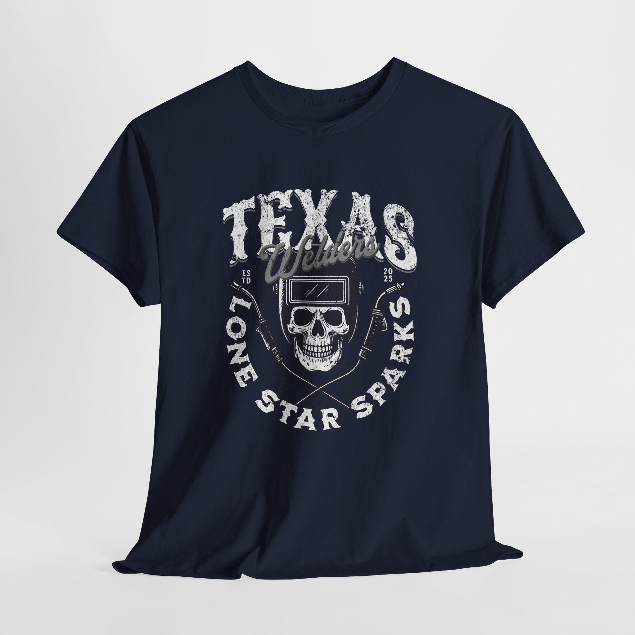 Show off your Texas pride and welding grit with this “Texas Welders – Lone Star Sparks” skull design. A bold welder’s helmet, crossed torches, and vintage typography create a powerful emblem for welders who live for heat, metal, and long days under the hood.